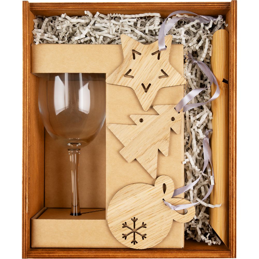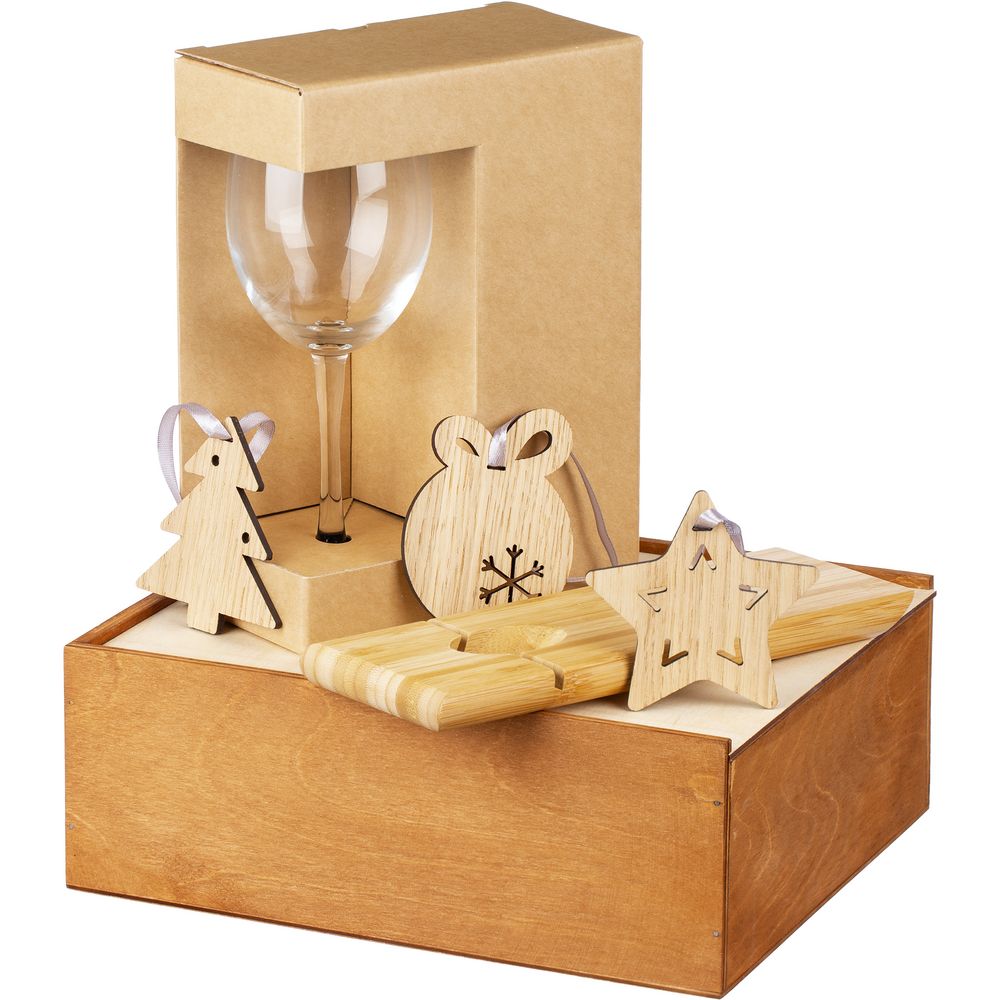 Мягкие натуральные оттенки и природные материалы элементов набора прекрасно дополняют классические винные бокалы, а также задают уютный и экологичный тон всему сету.