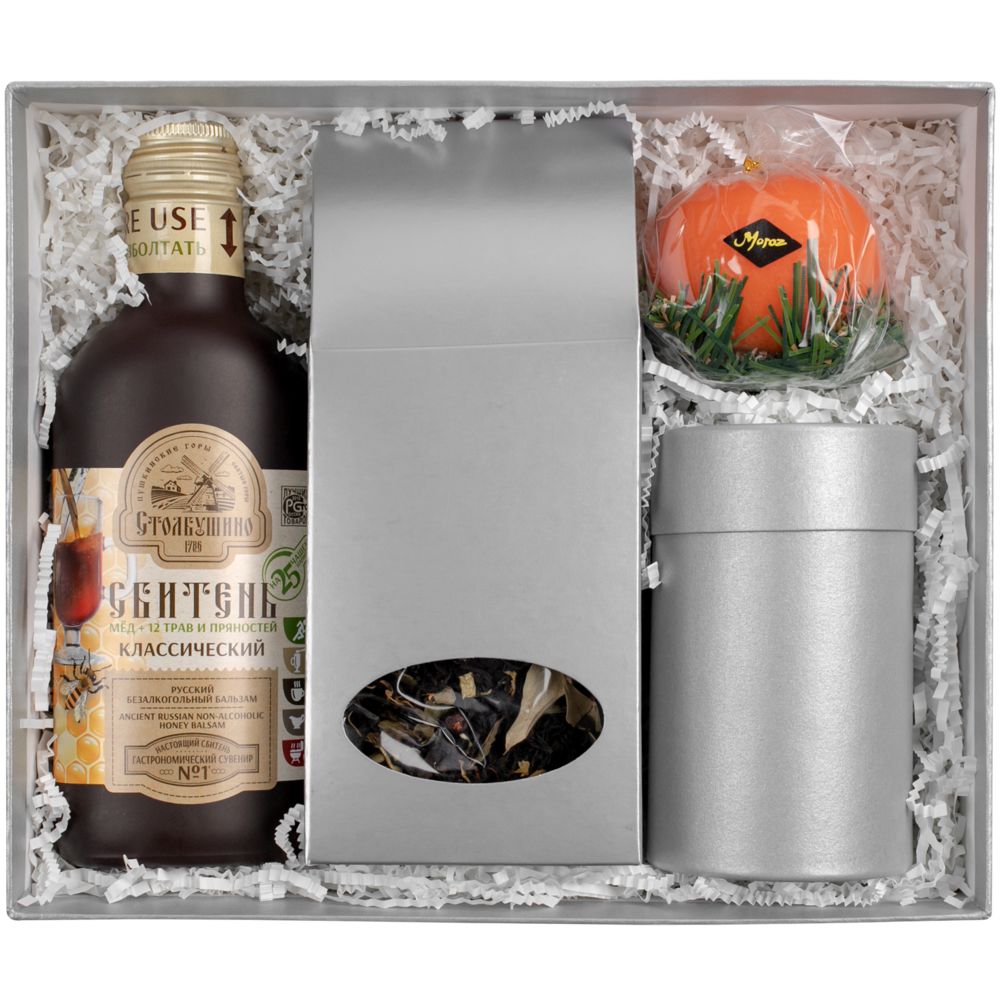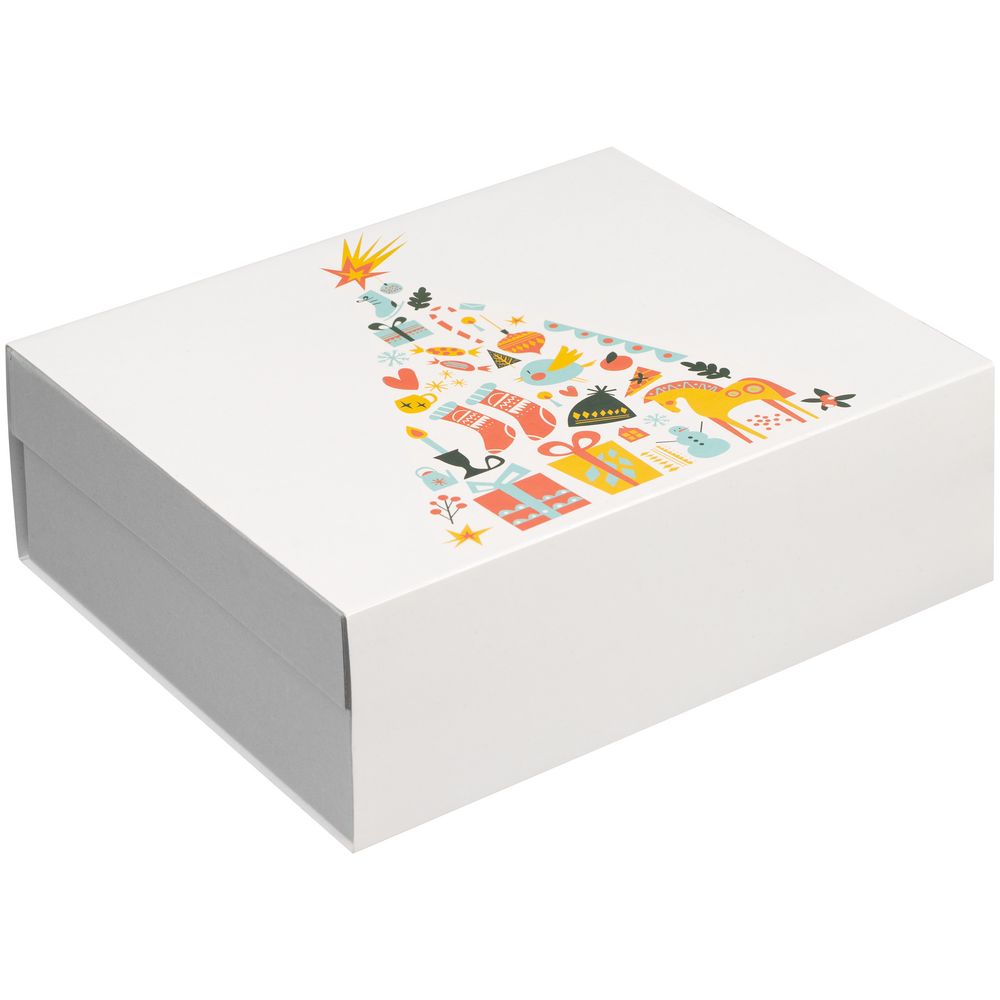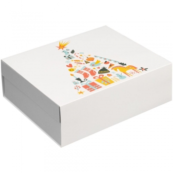 Коробка изготовлена из переплетного картона, кашированного гладкой дизайнерской бумагой Majestic.