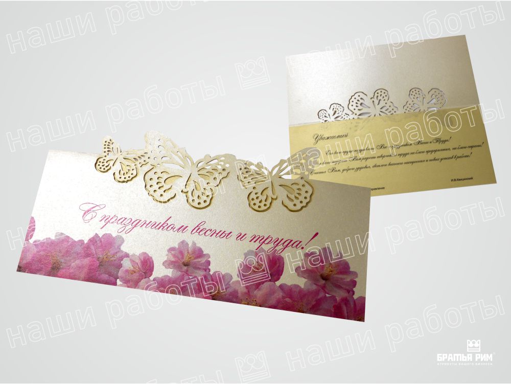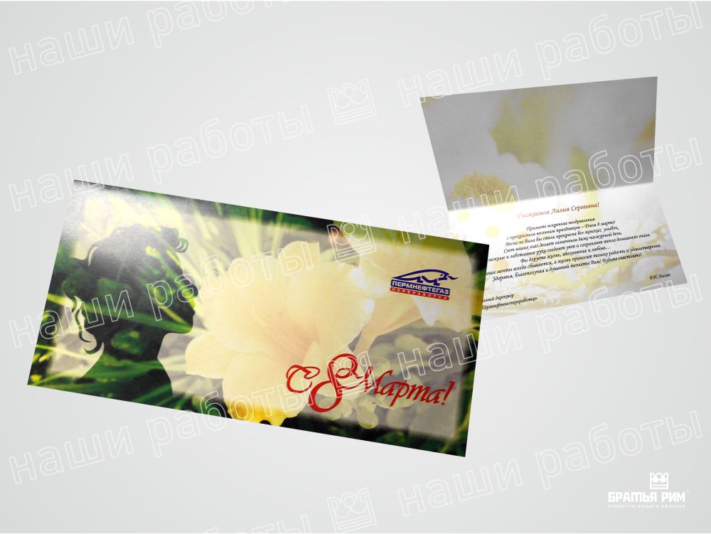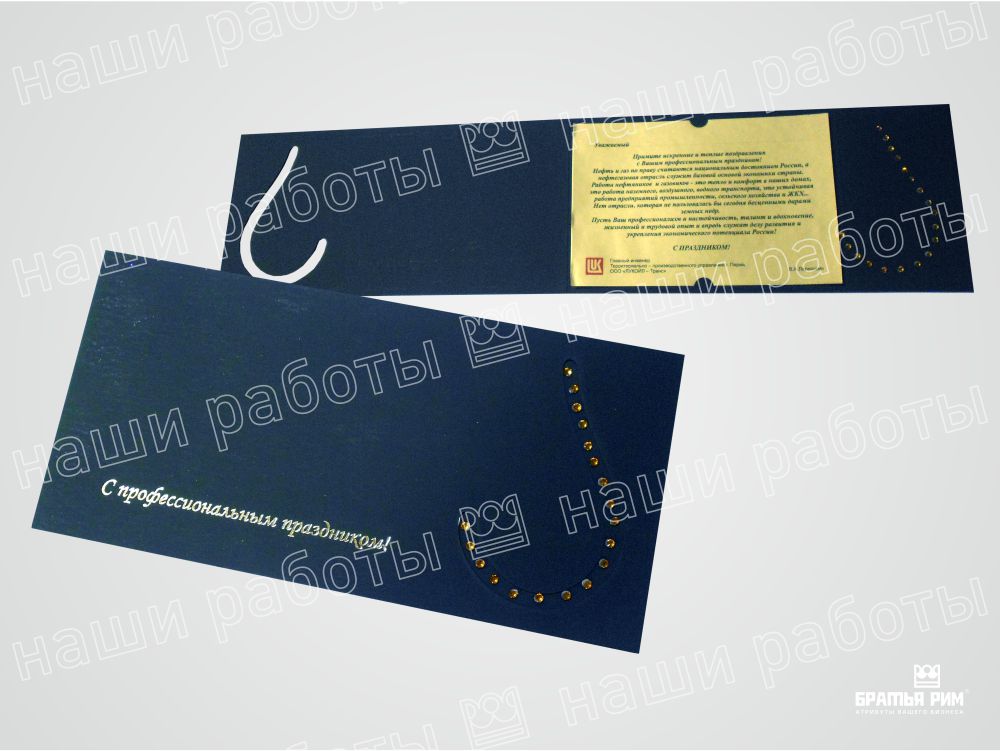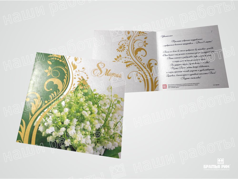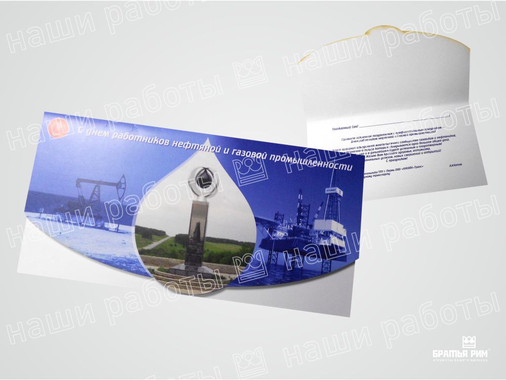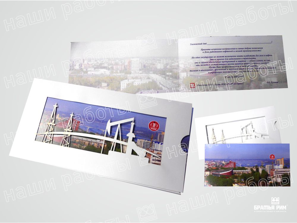 • Премиум-сегмент: Открытки с конгревным тиснением, выборочным лакированием и другими вариантами сложной постпечатной обработки для особых случаев.